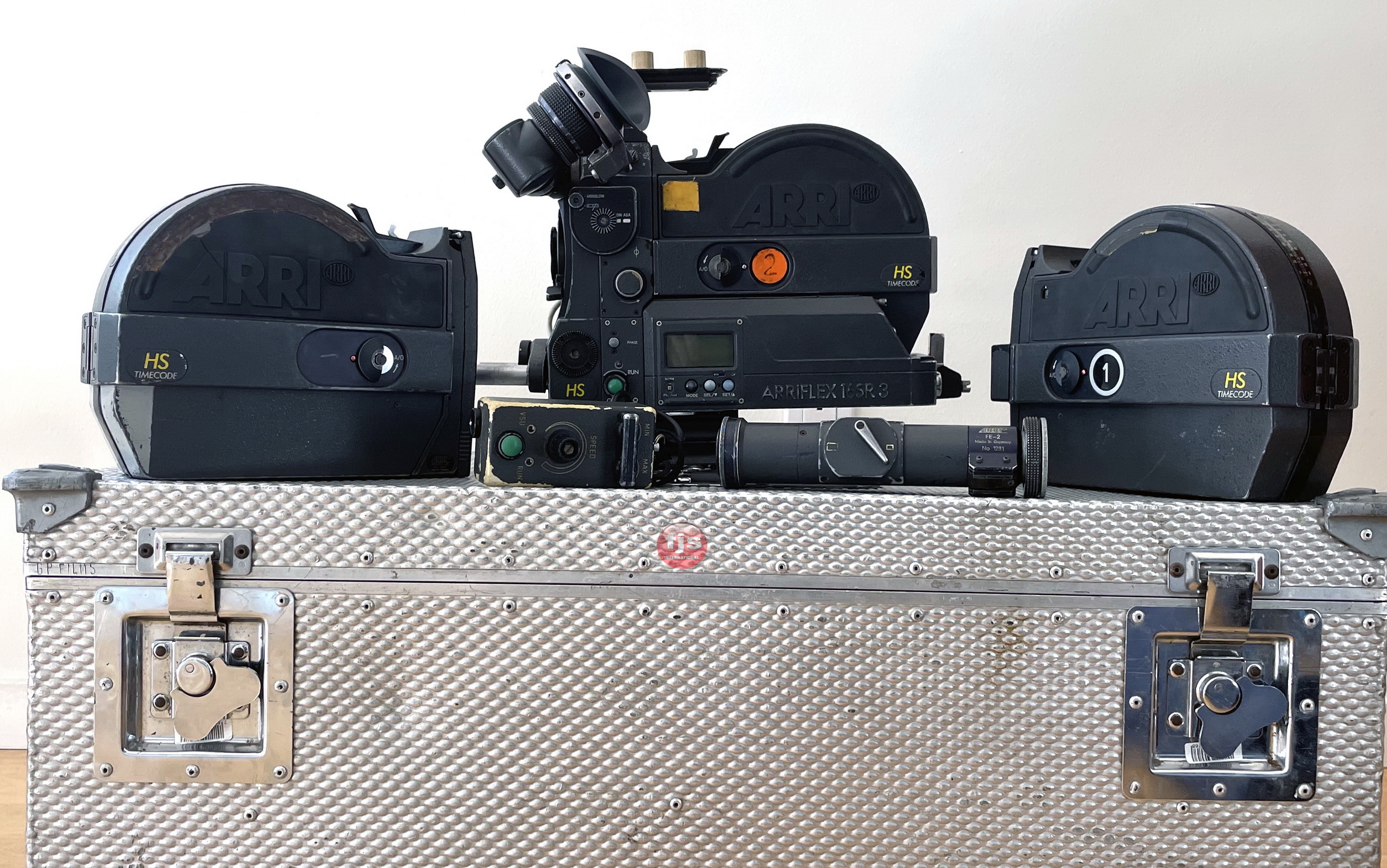 ARRI III High Speed Camera, Super 35 Conversion by P&S Technik in Germany, including three 400ft magazines. The Magazines are high speed compatible with the ARRI 435 series of cameras, achieving maximum speeds of 150fps.