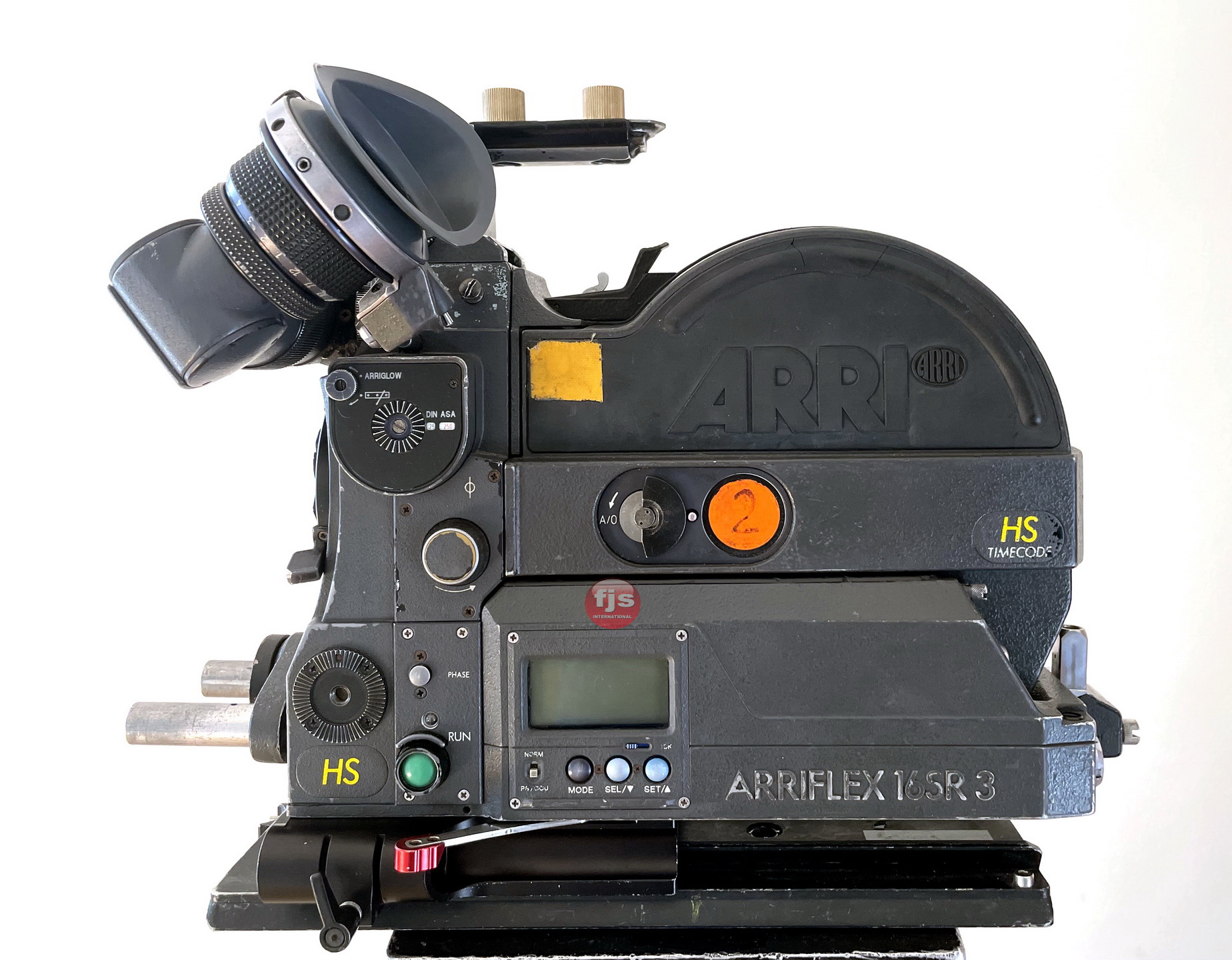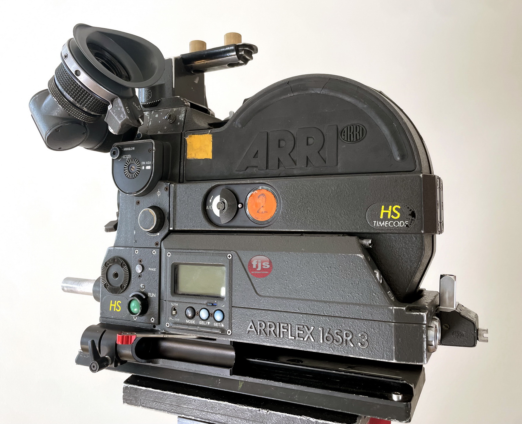 The camera has a variable shutter to the following degrees. 180,172.8,144,135,120,105,90,75,60,45,22,15 Degrees. Fitted with high speed Gate Ground Glass – 1.78:1 with Big TV Markings
