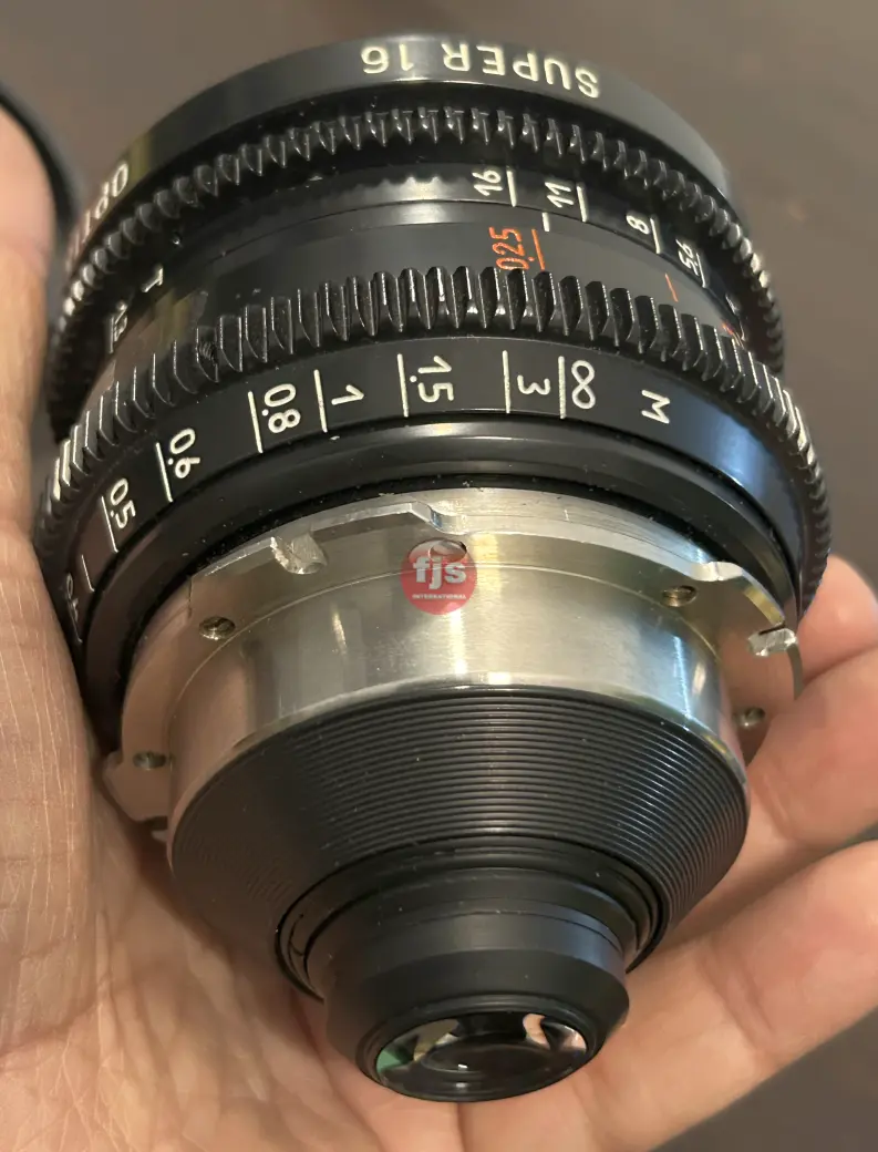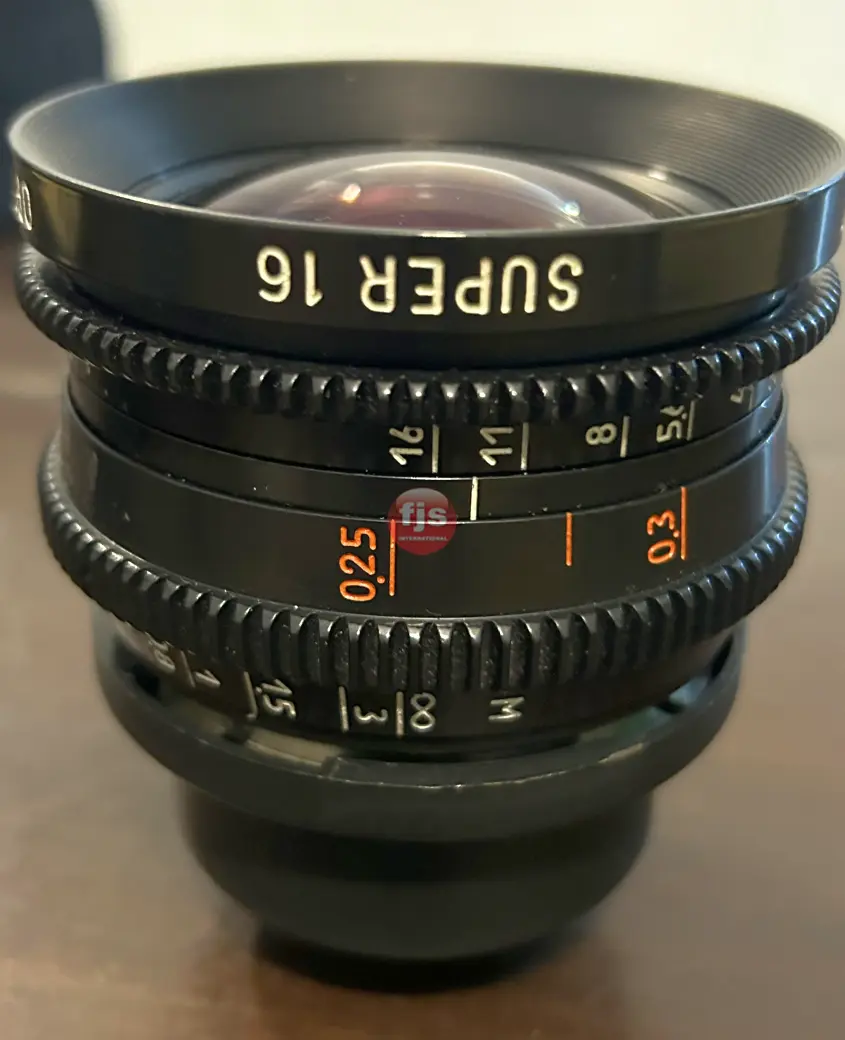 The Optar Illumina 8mm T1.3 prime lens covers the full Super-16 aperture with room to spare. The Optar Illumina Primes are often referred to as Russia’s answer to Zeiss Super Speeds. They are very similar to Zeiss Super Speeds in regards to speed, wide open performance, size, weight, and mechanical design. There are some differences though. These lenses have a unique iris design that produces petal shaped bokeh when stopped down. Their more modern coatings give flares a more modern flavor with more greens and magentas. The Optar Illumina lenses offer one of the most modern optical designs available for Super-16mm cinematography. At one point in time, regarded to be a modern alternative to Zeiss Super Speeds these are fast lenses that can work well in available light. They were the first set of lenses specifically designed for the Super-16 format. Lens has large, clearly marked focus markings, that can be read from either side of the lens. Excellent lens with nice color contrast and nice vintage warmth. They have a slightly warmer and softer contrast look than Zeiss glass, similar to the difference between Cooke and Zeiss. These lenses have excellent color and contrast, and are very resistant to glare. – hdgear.tv